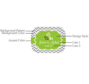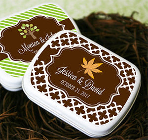 Labels may be personalized with two custom lines and will arrive separate from the tins. You may easily attach the self-stick label to each tin.